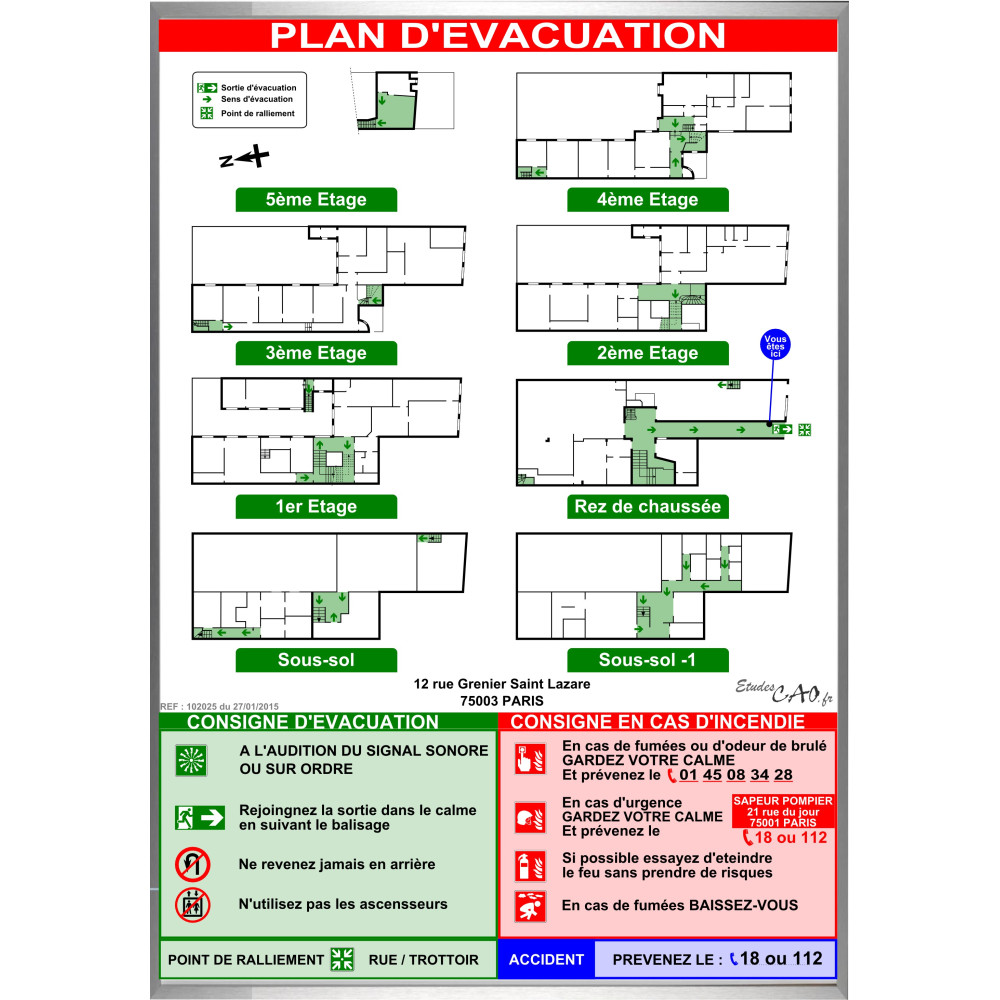 NF X08-070 plan d'évacuation Conforme à la norme NFX 08-070 de Juin 2013.